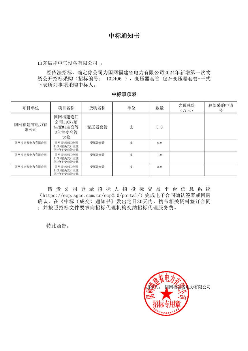 2024.11.29 交流穿墻套管中標(biāo)通知書