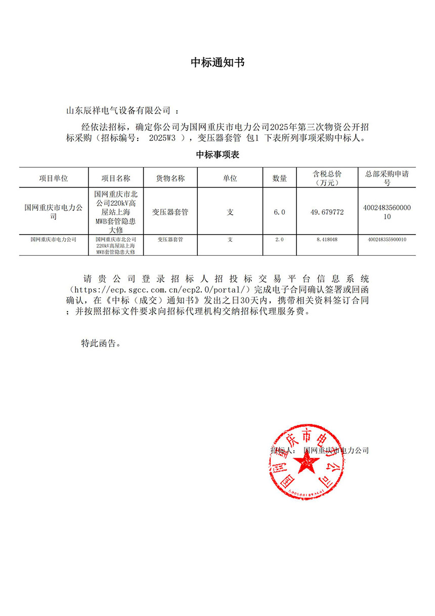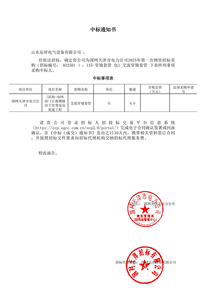 2025.01.03 交流穿墻套管中標(biāo)通知書